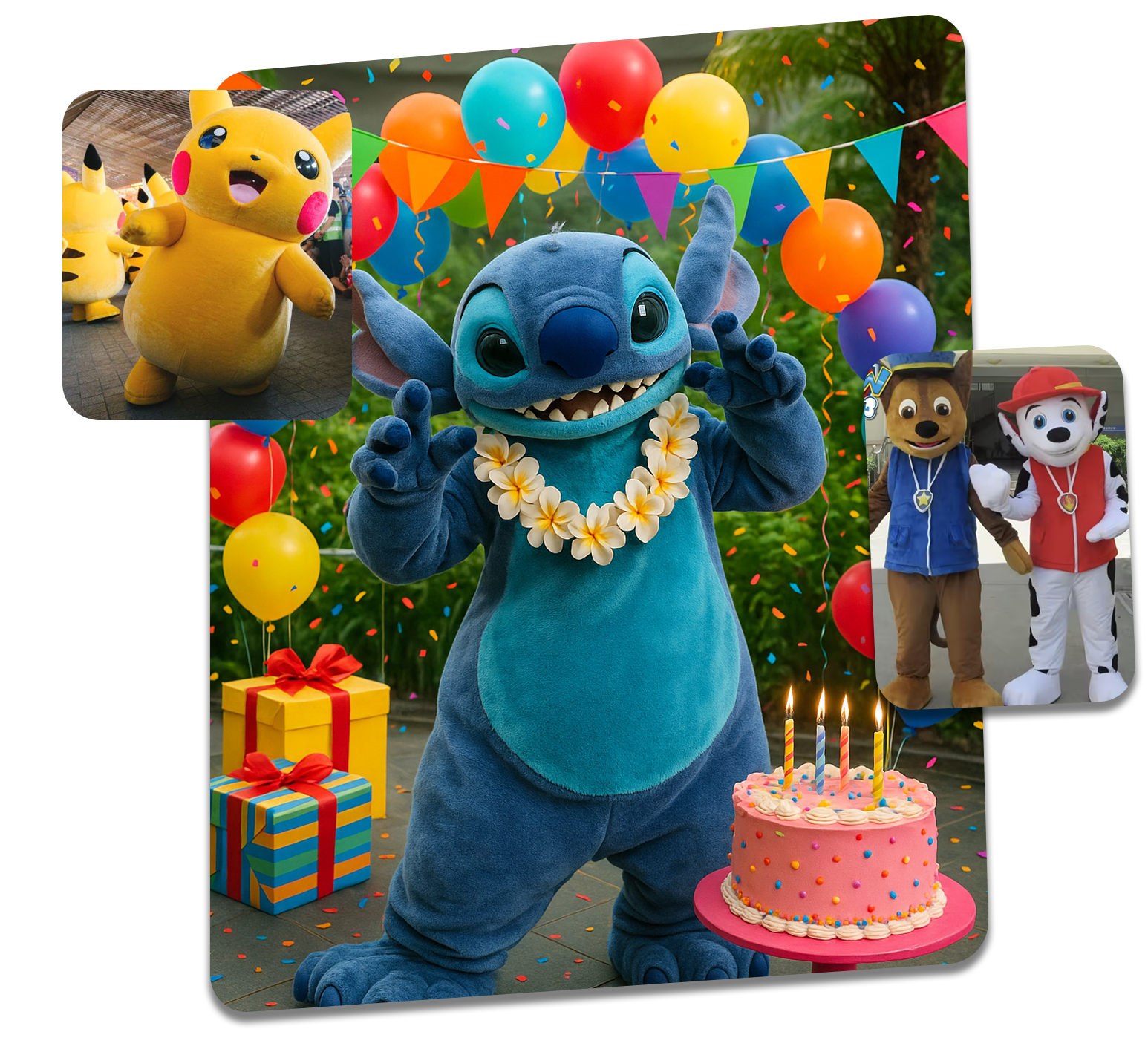 Spécialiste de la location de mascottes et de l’organisation d’anniversaires, nous transformons chaque fête en un moment inoubliable